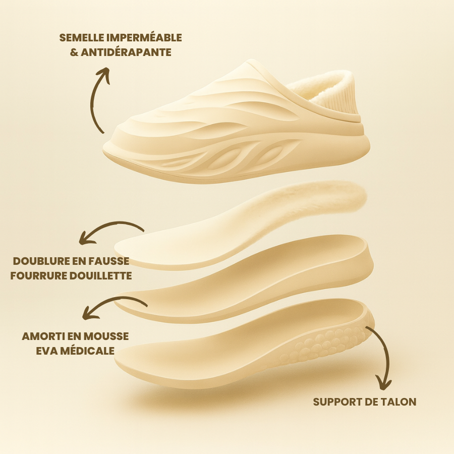 Chaque pas ne devrait pas être une épreuve. Oubliez les chaussures fragiles qui aggravent vos maux. Avec les chaussons CloudAir 3.0, le soulagement commence dès que vos pieds les touchent.